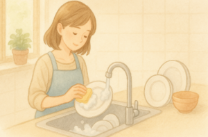 給湯は使用量がそのまま電力に反映されるため、行動の見直しが鍵となります。食器洗いでは油汚れを紙で拭き取り、ぬるま湯で洗う、まとめ洗いで給湯回数を減らすといった工夫が現実的です。