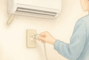 長期不在やオフシーズンには、コンセントを抜くことで待機電力を確実にカットできます。あわせて、フィルター清掃や室外機周りの確認を済ませておくと、再開時の効率低下を避けられます。