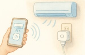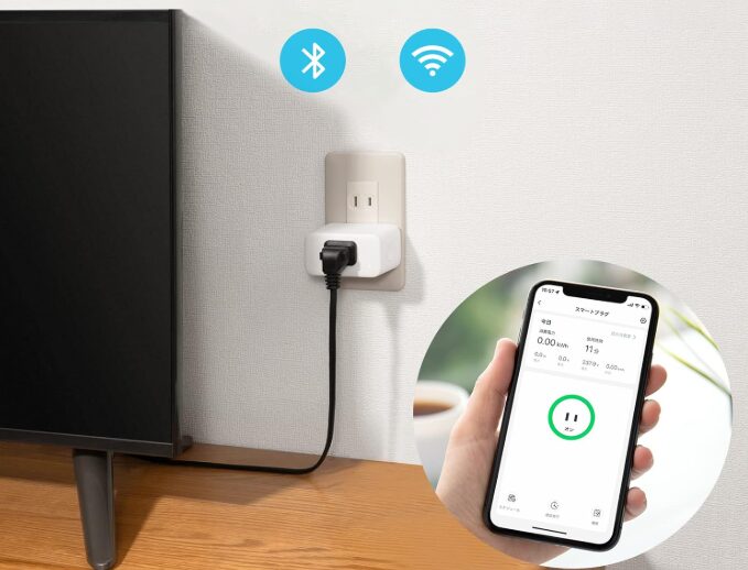 スマートプラグは、コンセントと家電の間に挟んで設置し、Wi-Fi経由でオンオフを制御します。家電側に特別な機能は不要で、物理的な電源供給を制御する仕組みです。