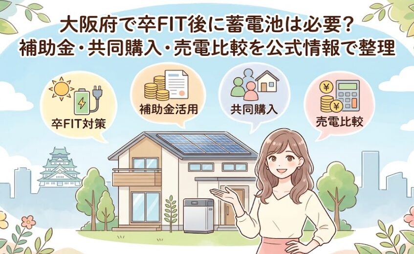 この記事では、大阪府で卒FITを迎えるあなたに向けて、「本当に蓄電池は必要なのか?」「補助金や共同購入はどう活用すればいいのか?」を、国や自治体の公式情報をもとに分かりやすく整理しました。